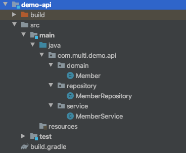 멀티 모듈 테스트를 위해 demo-api에 패키지 경로와 클래스를 생성한다.