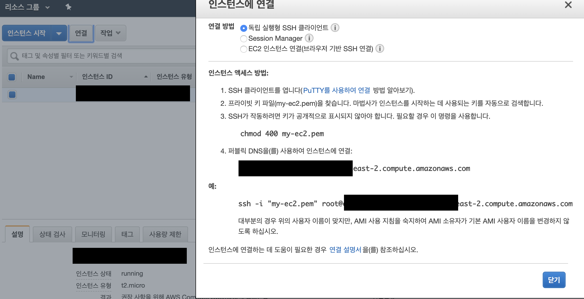 % ssh -i "my-ec2.pem" root@내 퍼블릭 DNS주소