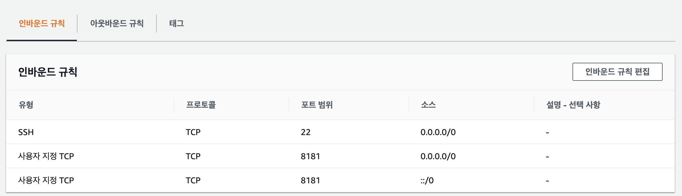 접속하기 전에 내 EC2 인스턴스의 보안그룹을 수정해줘야 접속이 가능하다.