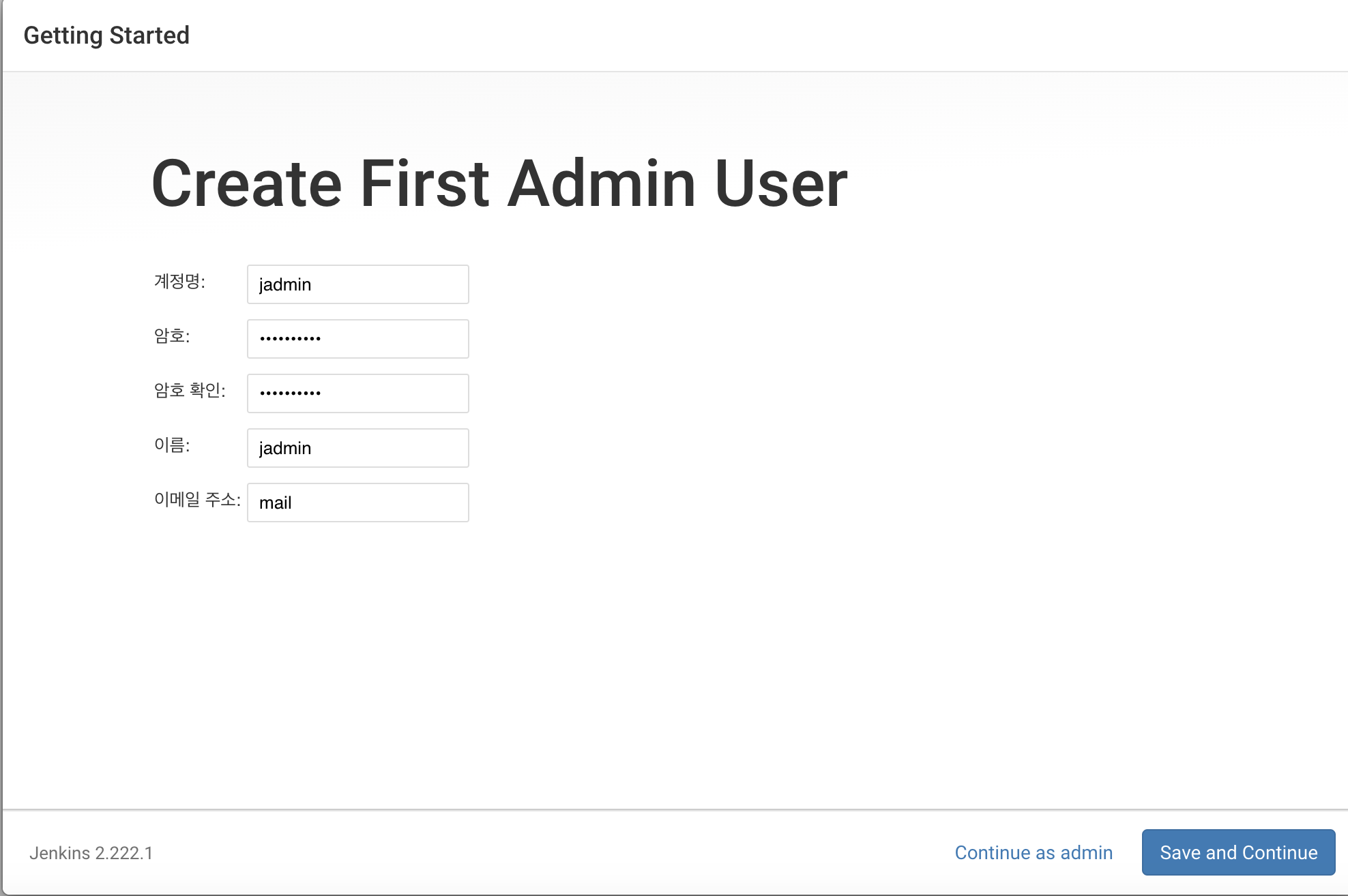 플러그인 설치가 잘 되고 화면이 넘어가면 관리자 계정정보 적고 다음으로 ㄱ