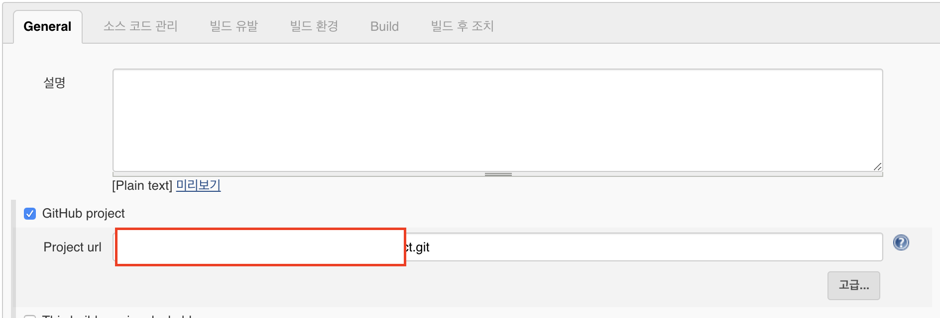General - GitHub Project를 선택하고 깃헙 레포지토리의 주소를 복사해 넣는다.