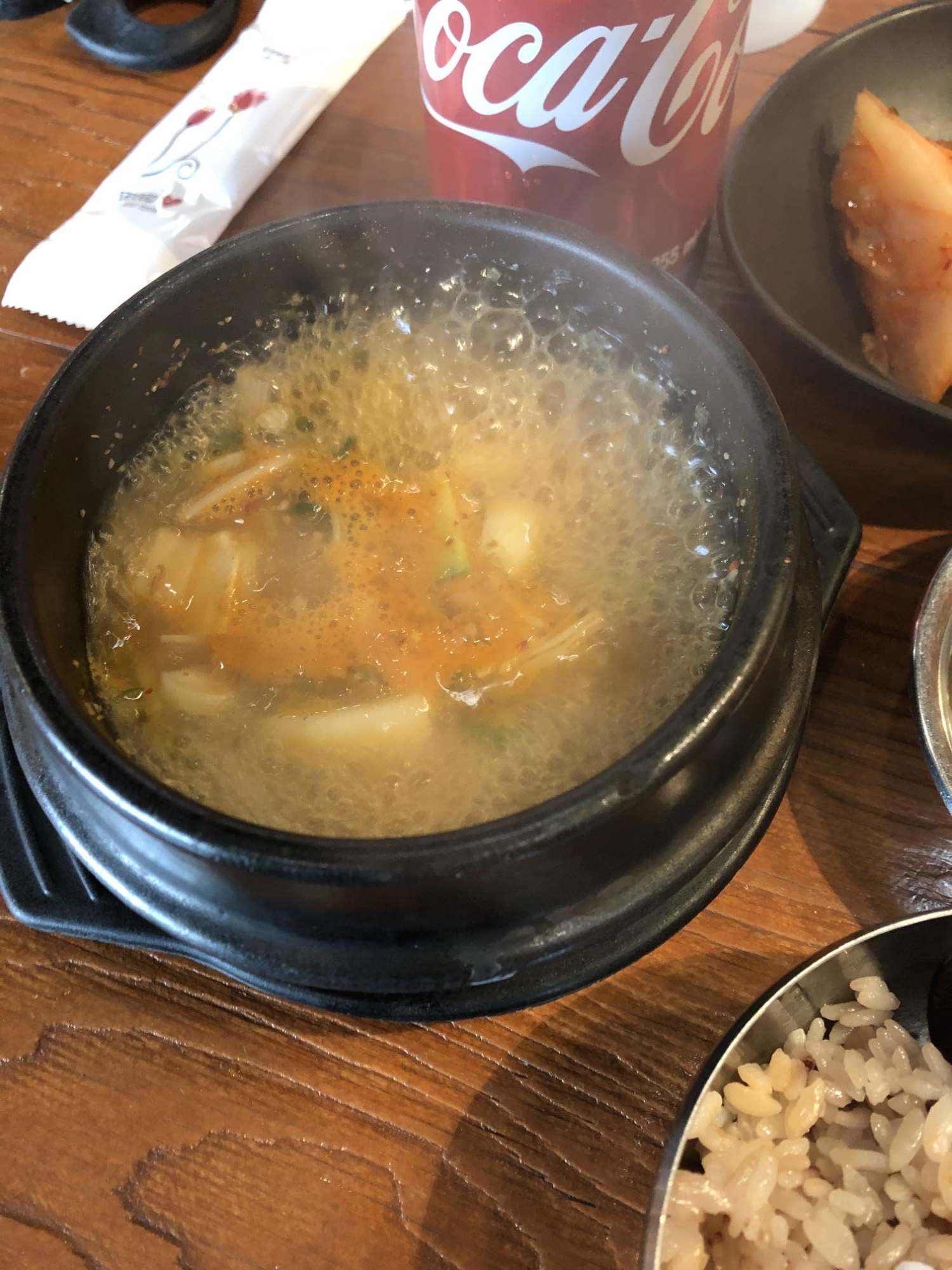 아주머니께서 밥이랑 된장찌개를 무료로 주셨다