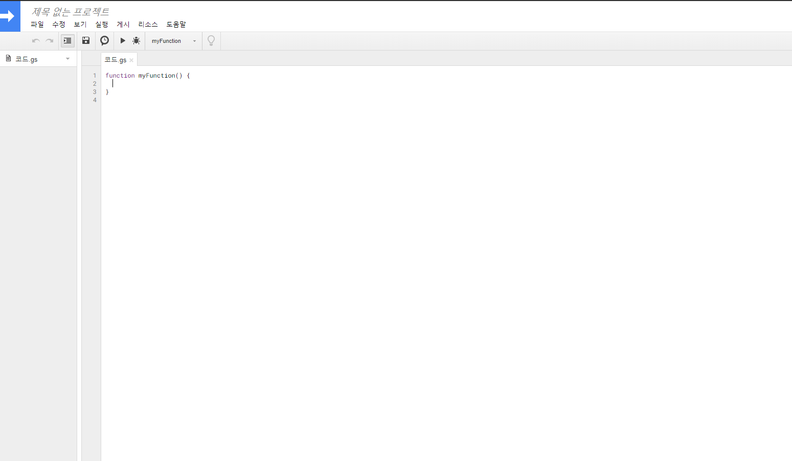 스크립트 편집기의 초기화면이다.