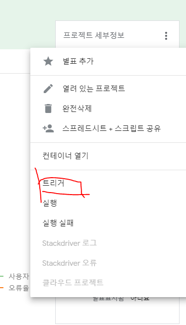 위 링크로 접속해서 좌측메뉴의 내 프로젝트 클릭 - {아까만든거} 클릭 - 우측 프로젝트 세부정보 - 트리거 클릭