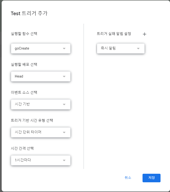 그래서 트리거를 등록해 1시간마다 동작하게 만들었다